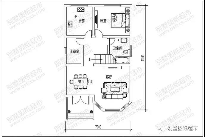 一 層:客廳、臥室、廚房、餐廳、衛(wèi)生間、儲(chǔ)藏室