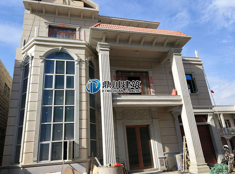 這是一款新農(nóng)村三層別墅設(shè)計(jì)圖紙施工的實(shí)拍。此款建房實(shí)例精美脫俗,藍(lán)色的弧形落地窗搭配米色的外墻,特有的質(zhì)感詮釋的淋漓極致。整個(gè)外墻裝飾給人感覺很沉穩(wěn)、大氣。而且落地窗使得整個(gè)房子的氣場(chǎng)大增。高貴而時(shí)尚。方形的羅馬柱搭配起來很顯恢宏!