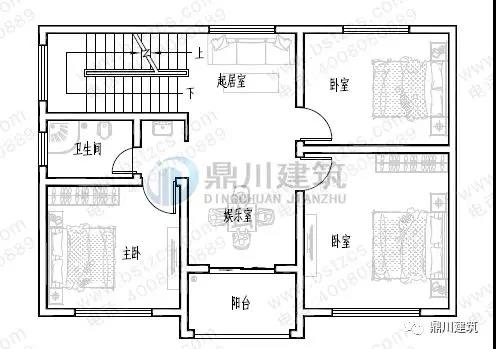 二 層: 起居室、娛樂室(附陽臺)、3臥室、衛(wèi)生間