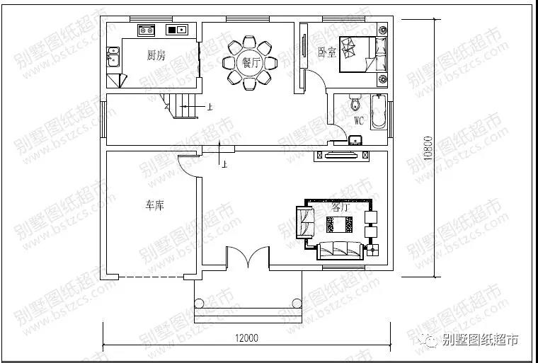 一 層:客廳、臥室、廚房、餐廳、衛(wèi)生間、車庫