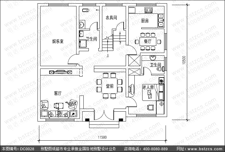 一 層:堂屋、客廳、老人房(附衛(wèi)生間)、娛樂(lè)室、廚房、餐廳、農(nóng)具間、衛(wèi)生間