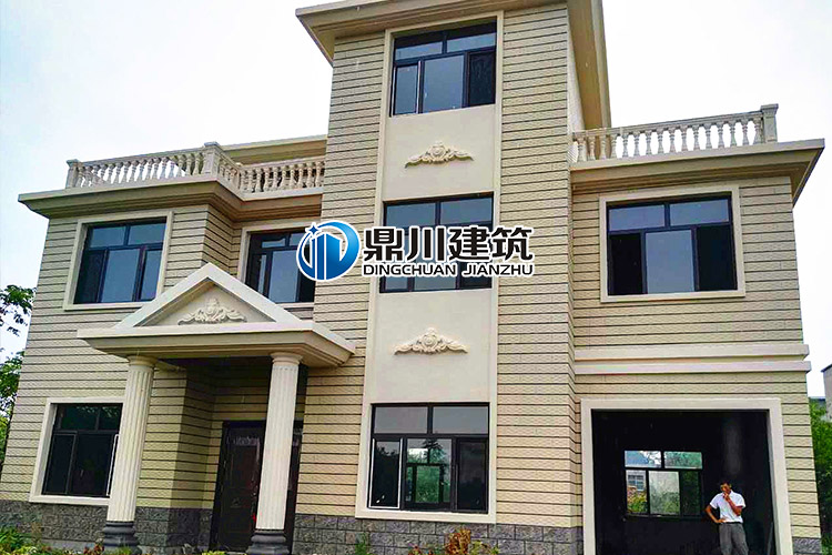 第一款建造實(shí)拍的戶主采用了黃色瓷磚來裝飾外墻,瓷磚打造的層次感和線條感,讓這款別墅看上去舒適自然。再加之外墻以羅馬柱、山花、花瓶柱來輔助裝飾,這些小小的歐式構(gòu)件成了整套別墅外觀的點(diǎn)睛之筆。