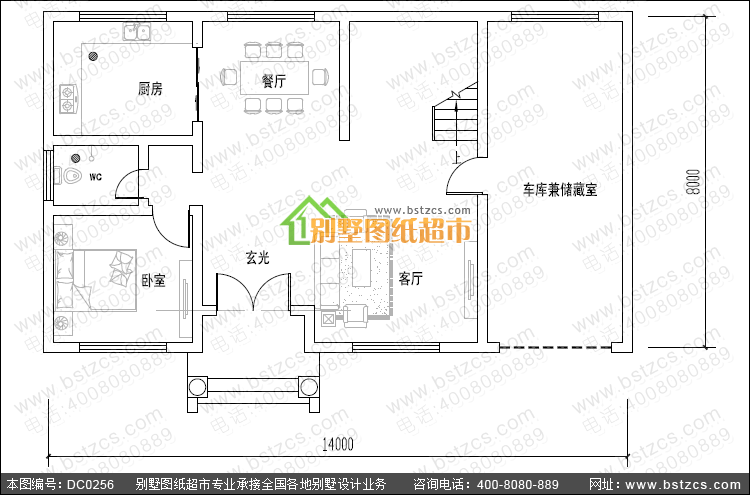 一 層:客廳、臥室、廚房、餐廳、衛(wèi)生間、車庫(kù)(兼儲(chǔ)藏室)