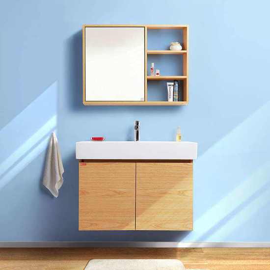 2、如果覺得鏡柜開合不方便,也可以選擇帶有開放式置物架的鏡柜,這樣,可以將常用物品放在開放式置物架上,直接拿去。不常用的則可以放進(jìn)鏡柜里。