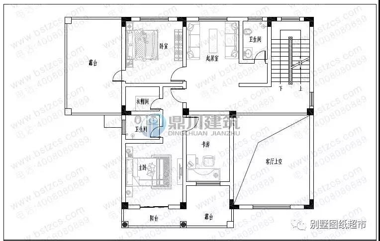 二層是起居室(附露臺(tái))、臥室(附書房,衣帽間,衛(wèi)生間,露臺(tái))、臥室(附露臺(tái))、2臥室、衛(wèi)生間的配置,二樓主臥獨(dú)立帶有書房、衣帽間、陽(yáng)臺(tái)和衛(wèi)生間,設(shè)計(jì)配置齊全,可用于家中的主人使用。
