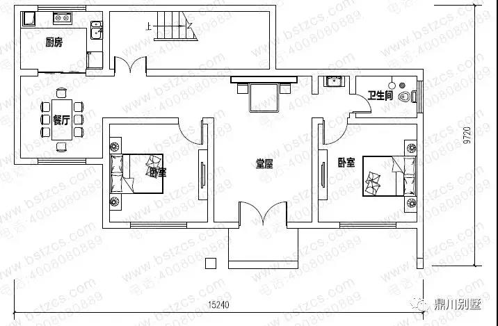 一 層: 堂屋、2臥室、廚房、餐廳、衛(wèi)生間