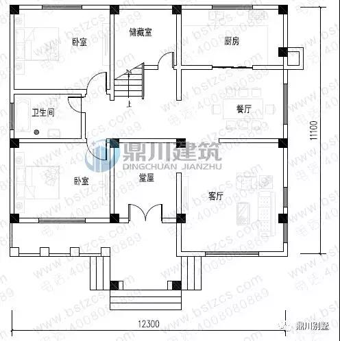 一 層:走廊、堂屋、客廳、2臥室、廚房、餐廳、衛(wèi)生間、儲藏室