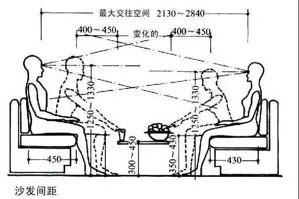 對立而坐時,二人的最大交往空間為2130-2840mm。
