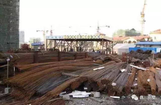 ▼現(xiàn)場部分待用鋼筋泡水▼