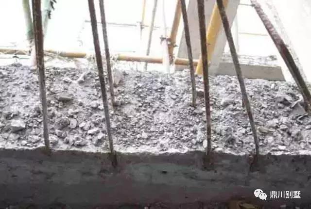 ▼高低差處現(xiàn)澆板成型質(zhì)量差、混凝土不密實▼