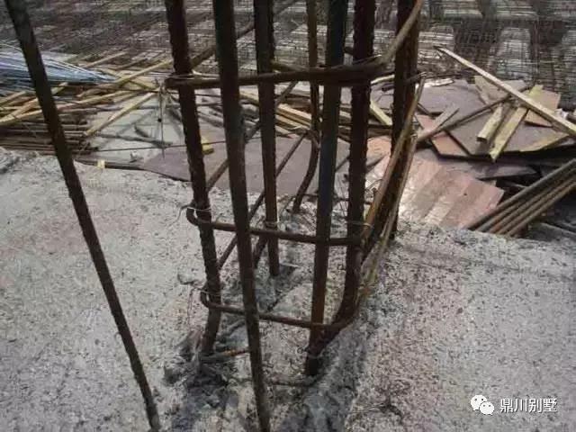 ▼構(gòu)造柱鋼筋搭接未綁扎,且在箍筋外▼