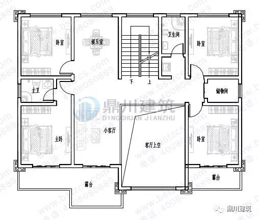 二 層:客廳(附露臺)、娛樂室、臥室(附衛(wèi)生間,露臺)、臥室(附露臺)、2臥室、儲物間、衛(wèi)生間
