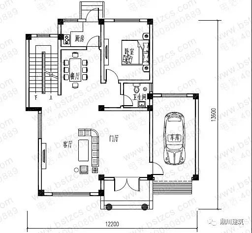 一 層:客廳、臥室、廚房、餐廳、衛(wèi)生間、車庫