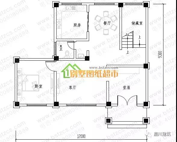 一 層:走廊、堂屋、客廳、2臥室、廚房、餐廳、衛(wèi)生間、儲藏室