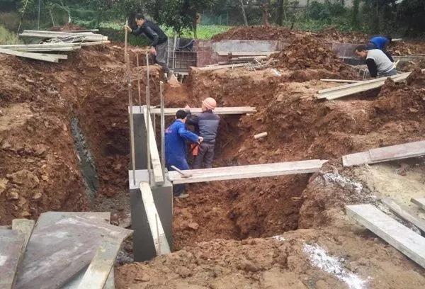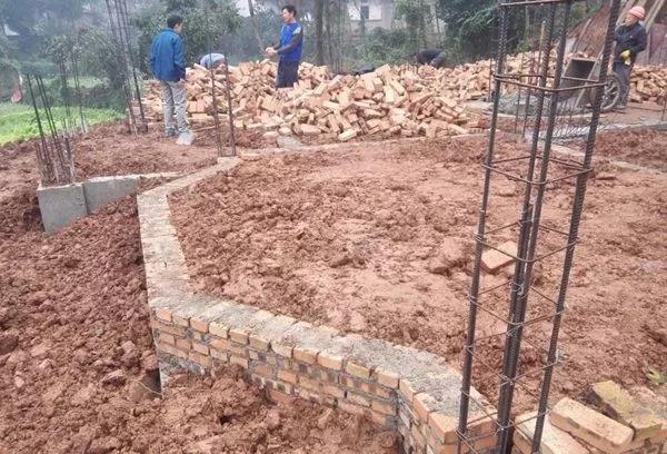 房主選擇建房的地塊原本是塊坡地,后面緊靠原鄉(xiāng)政府公社房屋,前面就是稻田了。房主把場(chǎng)地平整之后,實(shí)地丈量了尺寸,撒了灰線,辦了開工儀式,就開始建房了! 因?yàn)槭瞧碌仄秸聛淼?,所以后面的地基很好,但是前面卻有很高的回填土?;A(chǔ)開挖到持力層后,發(fā)現(xiàn)前后的高差有2米多,這種情況不適合采用原圖紙?jiān)O(shè)計(jì)的條形基礎(chǔ),我們就請(qǐng)結(jié)構(gòu)工程師根據(jù)現(xiàn)場(chǎng)情況對(duì)基礎(chǔ)進(jìn)行了設(shè)計(jì)變更,采用了局部獨(dú)立柱基礎(chǔ)和加大地梁的方法進(jìn)行處理。