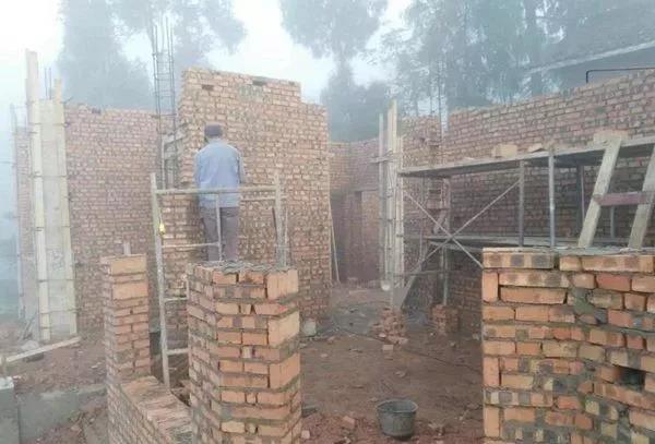 ▼二層樓板支模,終于可以平視鄉(xiāng)公社房屋了