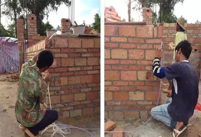 當(dāng)然為保證墻體橫平豎直,施工隊(duì)也采取了一些很好的措施,這點(diǎn)值得學(xué)習(xí)。