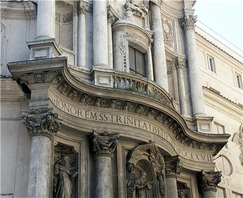 圣卡羅教堂位于羅馬,由波若米尼設(shè)計。在整體設(shè)計中,整個教堂的凹凸起伏感得以體現(xiàn),不僅墻面凹凸度大,帶有大量的裝飾,而且設(shè)計手法純熟,使得光影效果完美呈現(xiàn)。