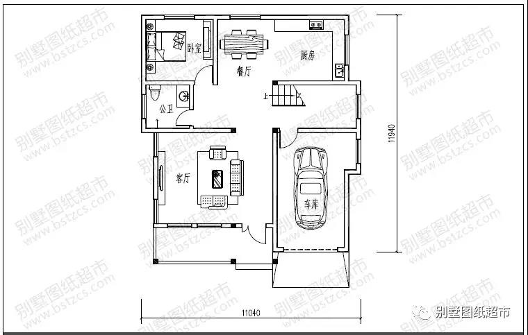 一 層:客廳、臥室、廚房、餐廳、衛(wèi)生間、車庫