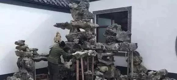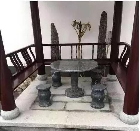 院子里面的假山和休息亭子。