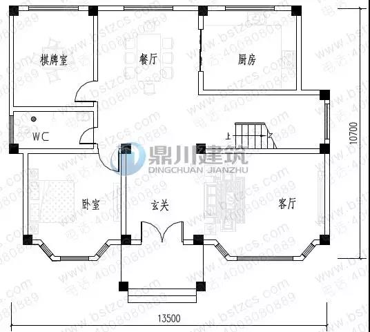 一 層:玄關(guān)、客廳、臥室、棋牌室、廚房、餐廳、衛(wèi)生間