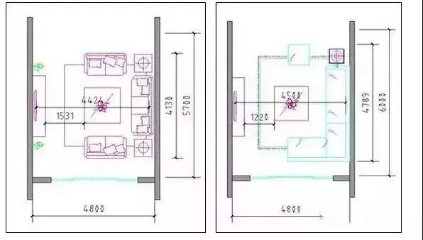 (2)開間上凈尺寸在4500mm以上,保證電視到沙發(fā)之間視距在4200mm以上可享受55寸及以上電視帶來視覺感受。