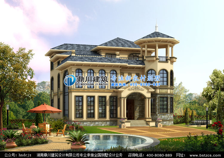 K014豪華三層帶露臺歐式別墅設(shè)計效果圖,三層別墅圖紙設(shè)計