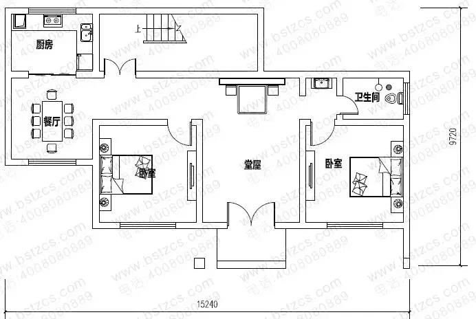 一 層: 堂屋、2臥室、廚房、餐廳、衛(wèi)生間