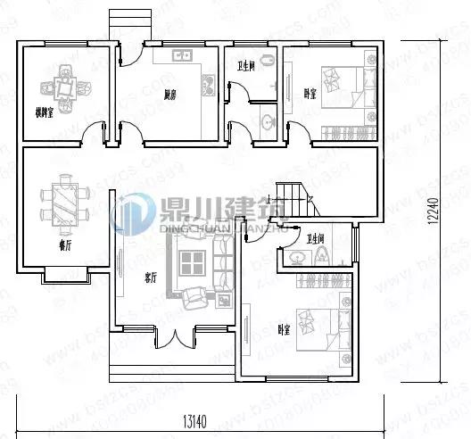 一 層: 客廳、臥室(附衛(wèi)生間)、臥室、棋牌室、廚房、餐廳、衛(wèi)生間