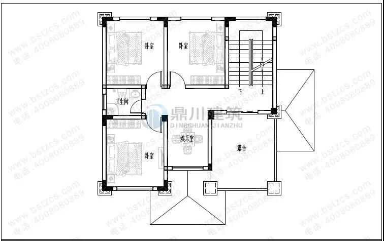 三 層:娛樂室、3臥室、衛(wèi)生間、露臺