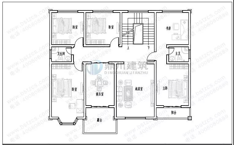 二 層:起居室(附陽臺)、3臥室、娛樂室、衛(wèi)生間