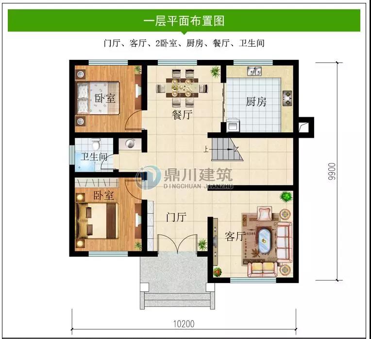 一 層:門廳、客廳、2臥室、廚房、餐廳、衛(wèi)生間