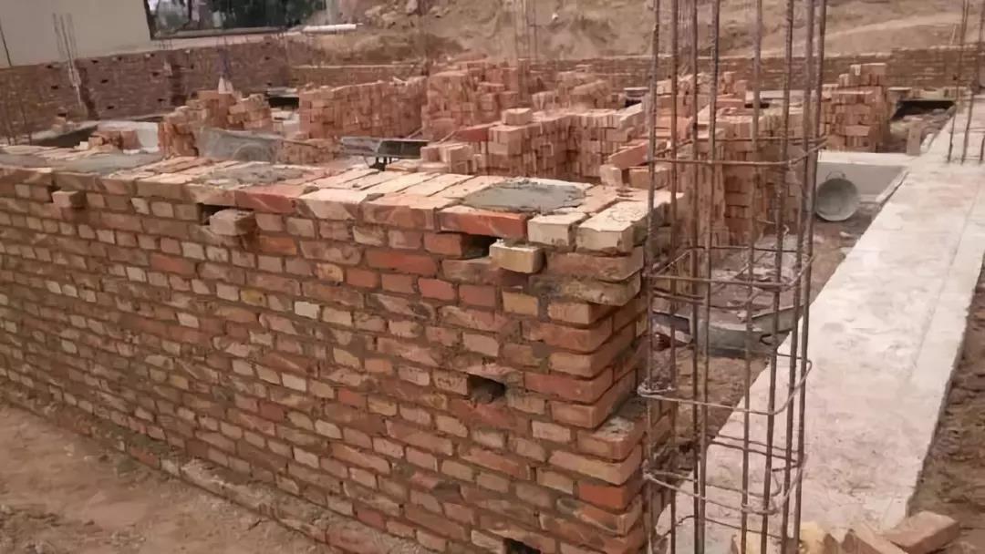 一層主體結構施工,墻體砌壘施工現(xiàn)場。