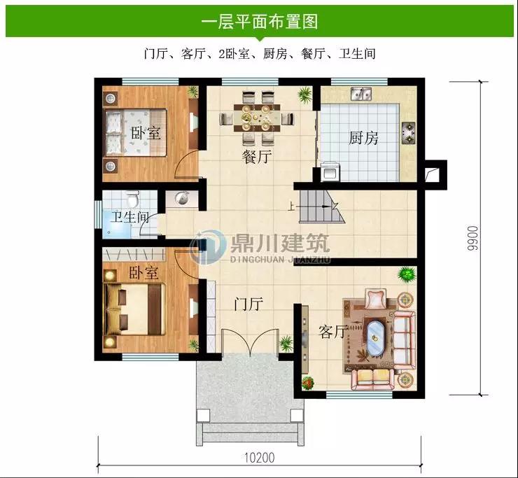 一 層:門廳、客廳、2臥室、廚房、餐廳、衛(wèi)生間