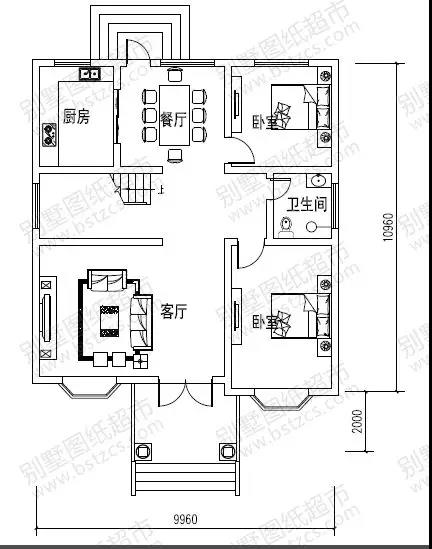 一 層:客廳、2臥室、廚房、餐廳、衛(wèi)生間