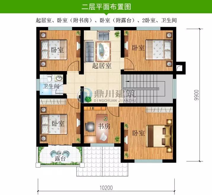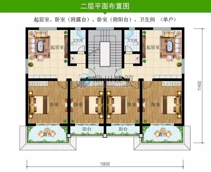 一層入戶即為門廳,客廳和門廳分隔開,保證了室內的私密性,一層帶兩間臥室,二層帶四間臥室,足夠一家三代居住,超大的露臺適合農村休閑,夏日乘涼再好不過!