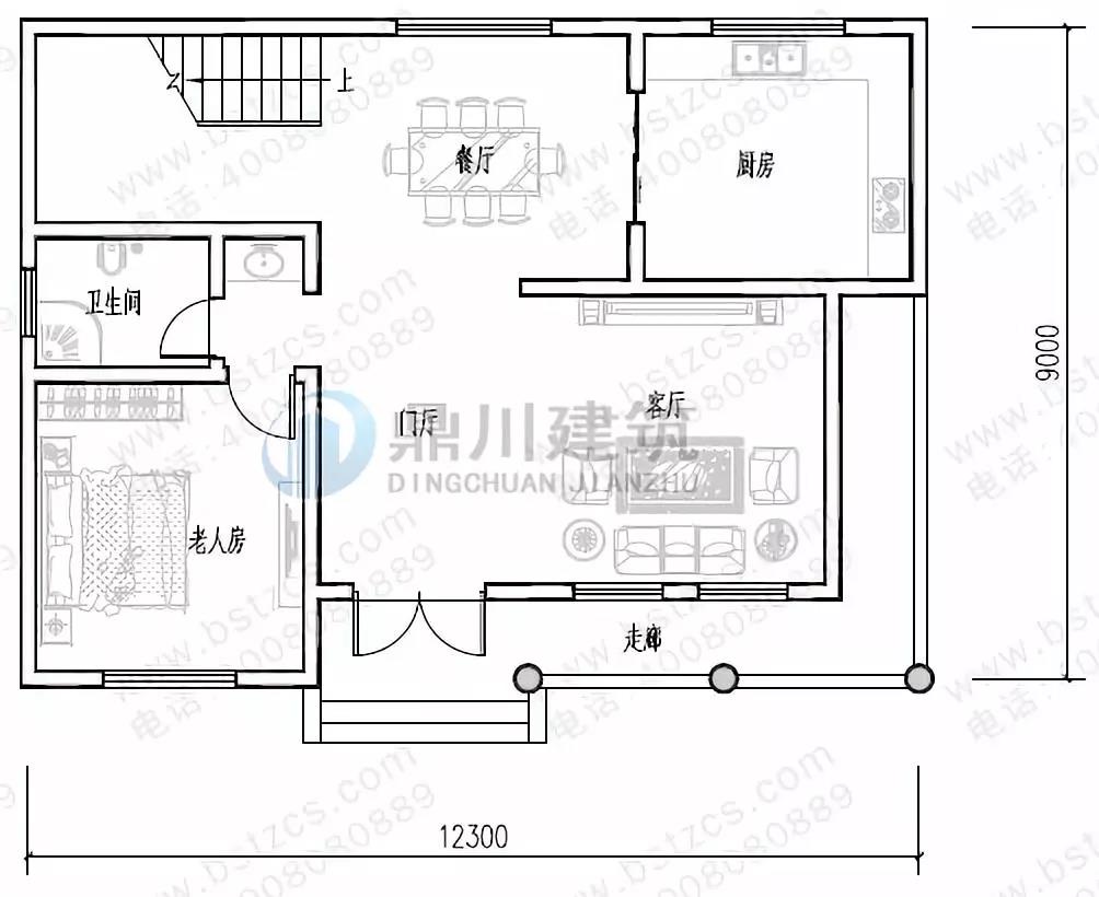 一 層:走廊、門廳、客廳、臥室、廚房、餐廳、衛(wèi)生間