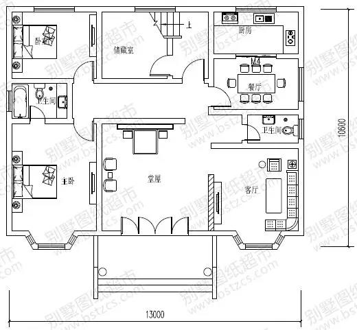 一 層:堂屋、客廳、主臥(附衛(wèi)生間)、臥室、廚房、餐廳、儲(chǔ)藏室、衛(wèi)生間