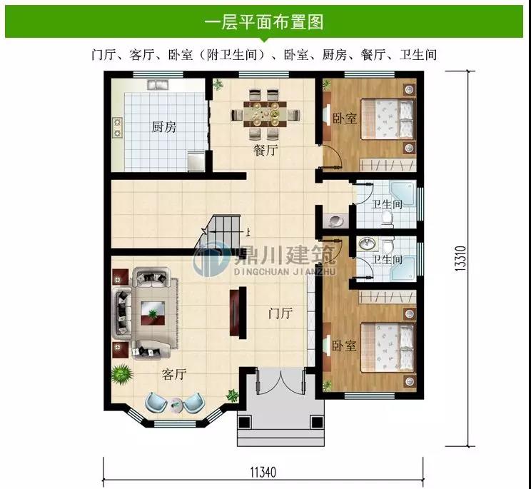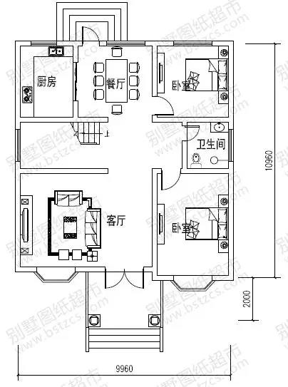 一 層:客廳、2臥室、廚房、餐廳、衛(wèi)生間