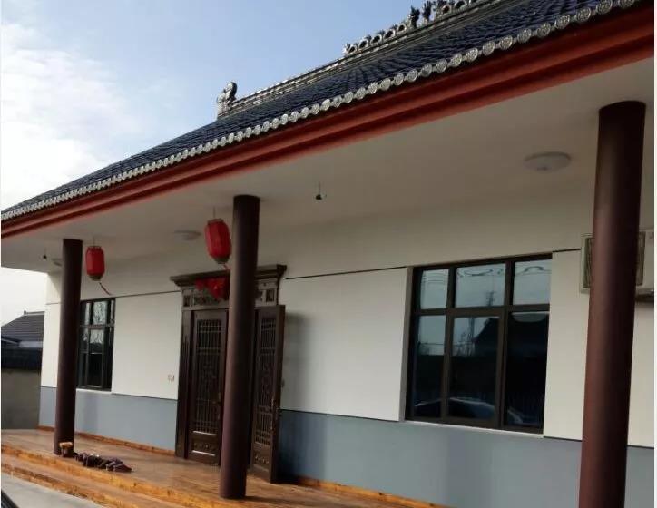 新中式風格的白墻黛瓦,外墻沒有過多的繁瑣裝飾,但整棟小別墅的坡屋頂?shù)牧鹆吆碗p龍戲珠的裝飾,既保持了中國的傳統(tǒng)感,又有時代感。