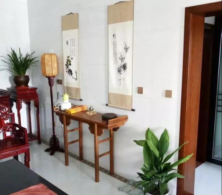 實木家具、花鳥裝飾畫、綠植和花瓶擺件,每一個角落都是充滿設計感。