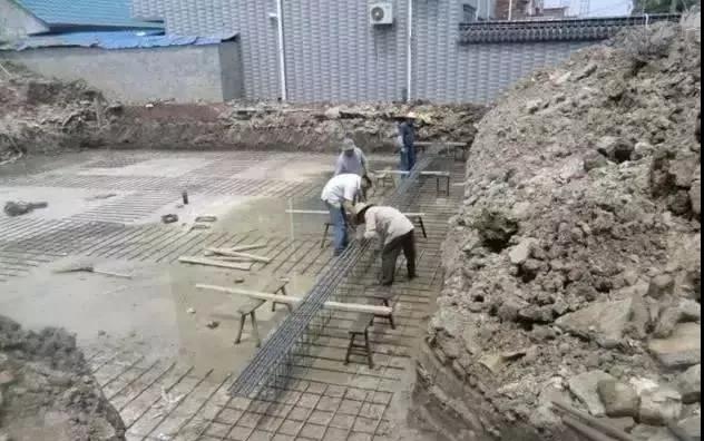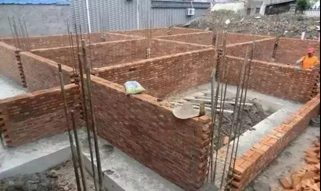 之前說過了,別墅做了地下架空層來防潮,因此這一步開始進(jìn)行紅磚砌筑地基墻,混凝土現(xiàn)澆。