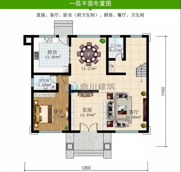 一 層: 堂屋、客廳、臥室(附衛(wèi)生間)、廚房、餐廳、衛(wèi)生間