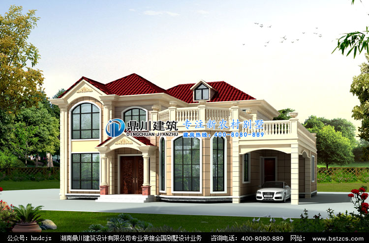 ZH006新農(nóng)村二層帶露臺別墅設(shè)計外觀效果圖,鼎川建筑別墅私人定制設(shè)計