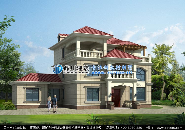J0115三層帶副樓歐式別墅設(shè)計圖效果圖,鼎川建筑別墅設(shè)計外觀效果圖