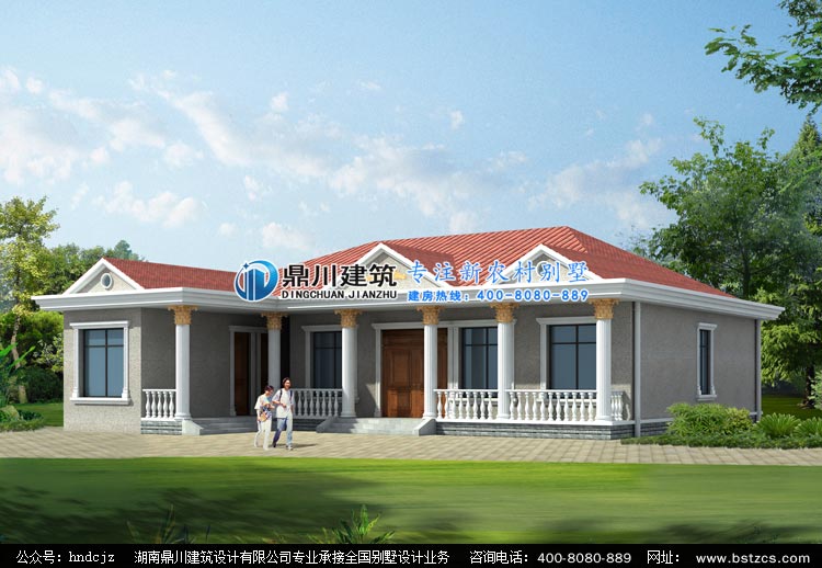 L0190農(nóng)村一層別墅設(shè)計(jì)圖紙外觀效果圖,鼎川建筑一層平方自建房設(shè)計(jì)圖