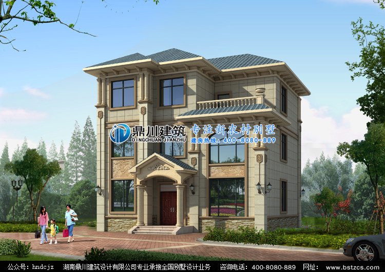 ZA008三層歐式別墅外觀效果圖,鼎川建筑三層別墅私人定制設(shè)計(jì)