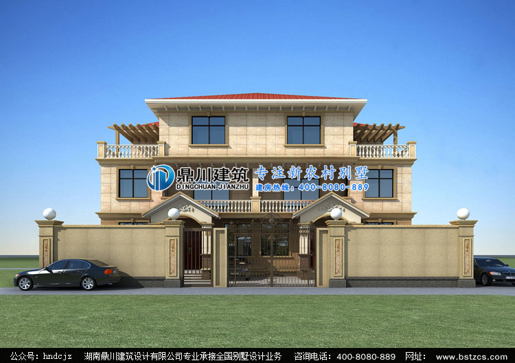 XT007三層帶院子雙拼別墅設計圖效果圖,鼎川建筑兄弟雙拼別墅設計