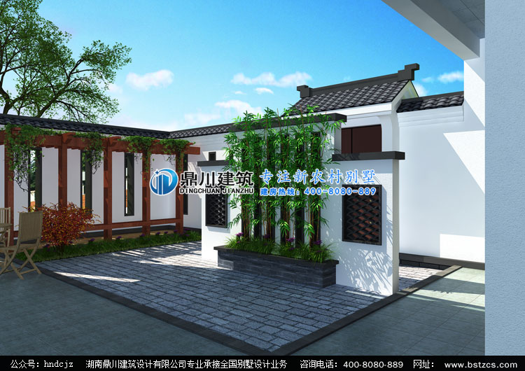 YW002中式三層帶院子自建房屋設(shè)計圖效果圖,鼎川建筑三層中式別墅定制設(shè)計