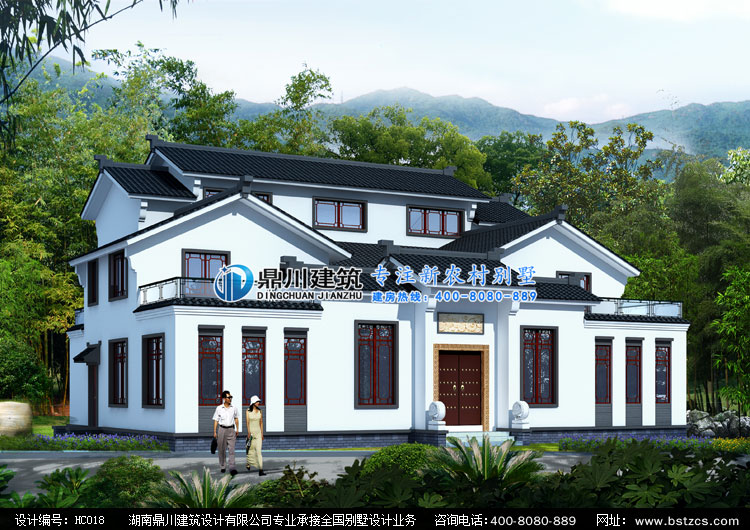 HC018二層帶內院中式自建房屋設計圖效果圖,鼎川建筑中式別墅定制設計